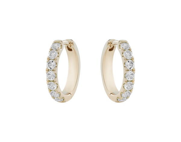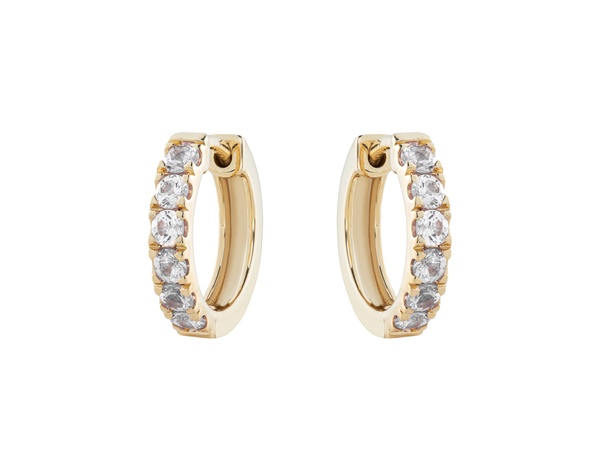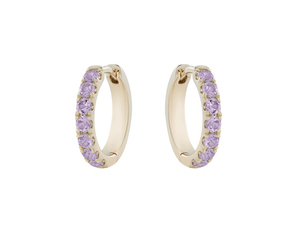 Our solid 9ct yellow gold cutdown set hoop earrings are available in pink, blue, green and white sapphire and in two sizes, large and small.