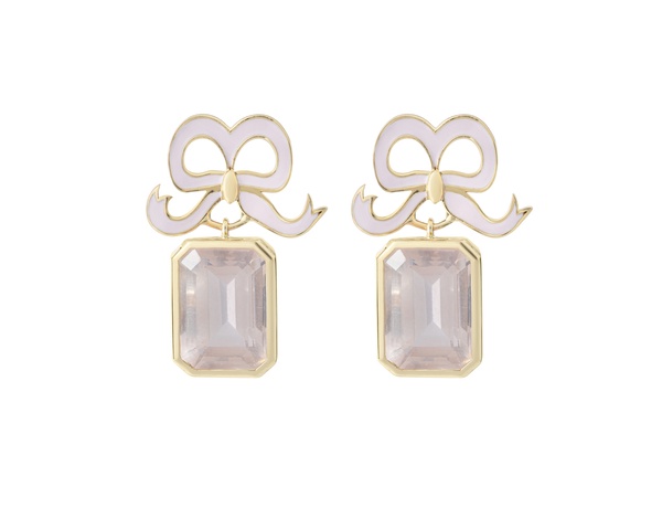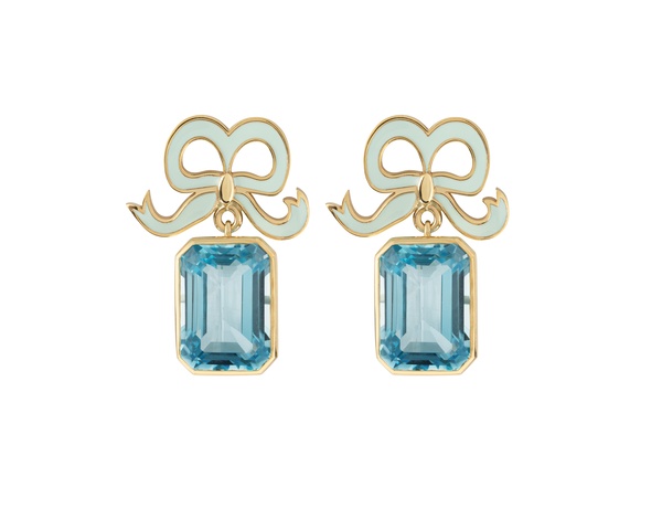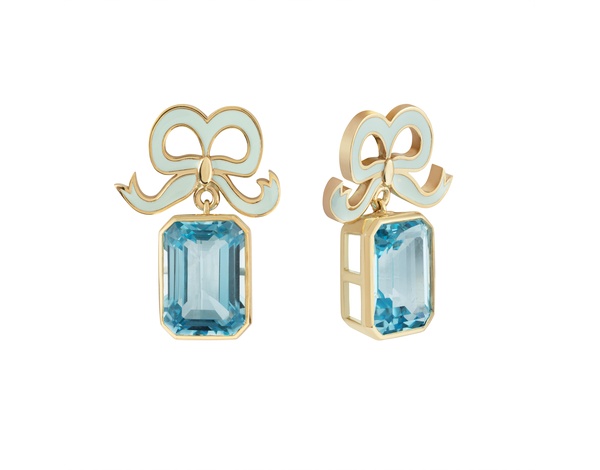 Available in pale blue with sky blue topaz drops, dark navy blue with london blue topaz drops, pale pink with rose quartz drops or white enamel and pearl drops.