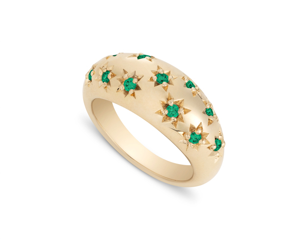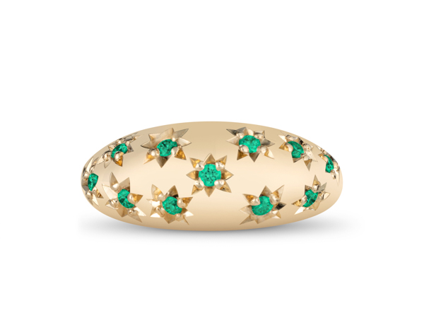 A slimmer version of our Jemima bombe ring, star set with diamonds or emeralds.