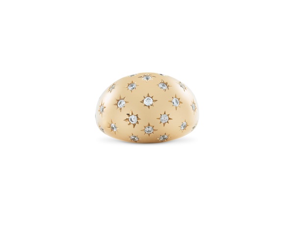 Our Jemima bombé ring is available in solid 9ct and 18ct yellow gold and is star set with 2mm diamonds.