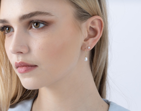 These white fresh water pearl drop earrings are a twist on the classic pearl stud. They are in solid 9ct yellow gold and the fresh water pearl is approx. 6mm in size.